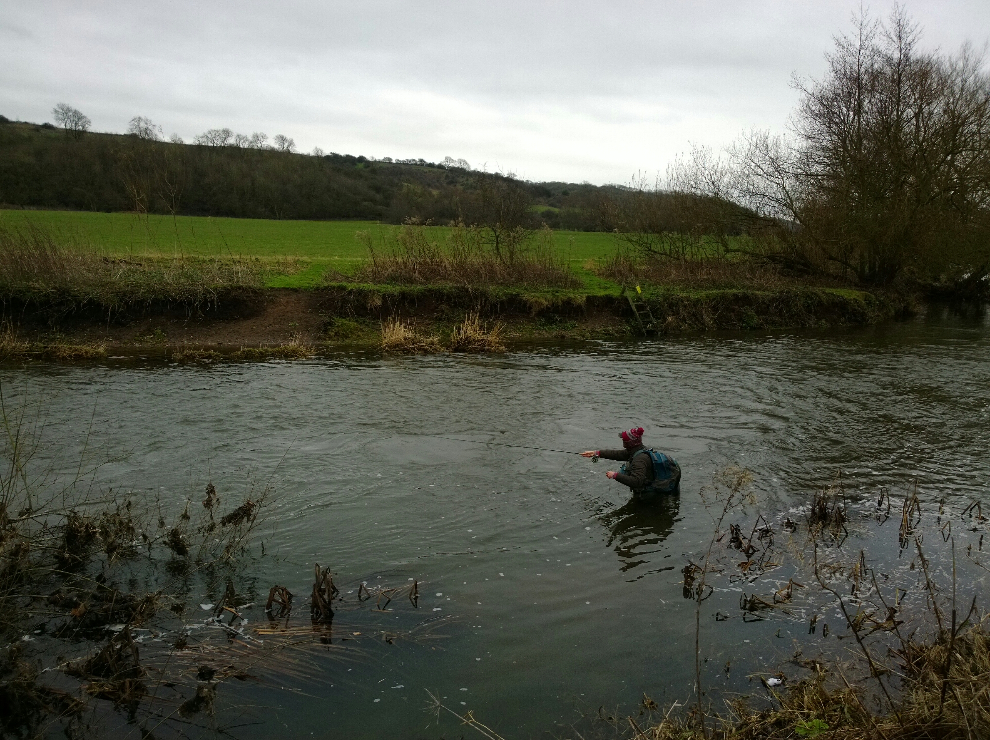 That’s not to say it hasn’t been chilly every now and again though. Cheesepaste Pete came up from London for a day Grayling fishing on a nice frosty morning. A clear and falling river, light wind and settled pressure promised to make for one of the best days Grayling fishing we were likely to have, and the talk at tackling up time was about what sort of cricket score we might rattle through, and maybe even a two pounder.