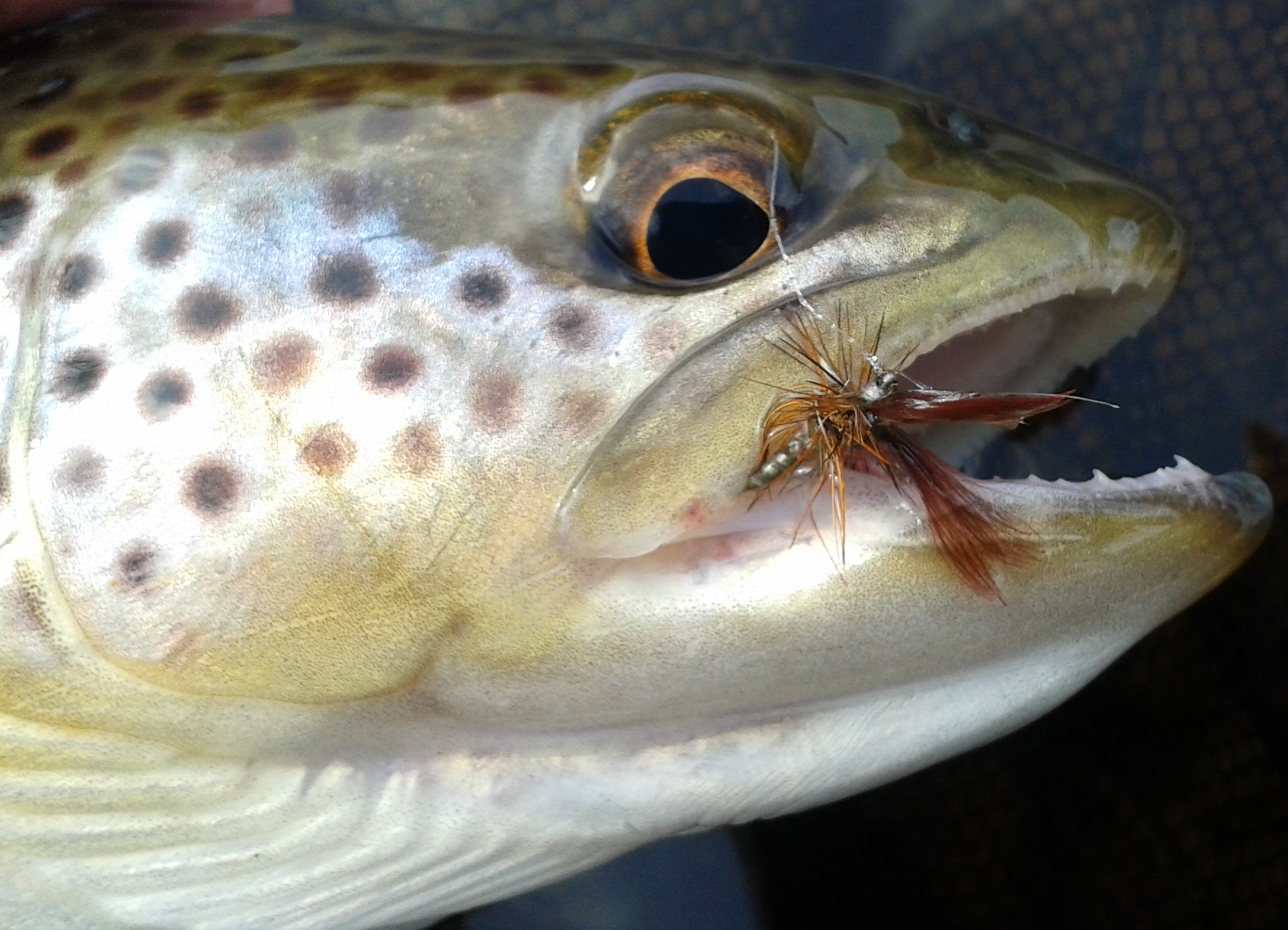 I had missed the best of the hatch however and at 13:00 with fish still rising they began to refuse Toms LDO but a quick switch back to my own MB dun pattern put another fish in the net before the rises stopped completely. It was interesting to note that the trout only switched from the LDO to the MB late in the hatch as both flies had been on the water the whole time. Once again I reached for the french leader and eaked a few more from the riffles including a terribly skinny 20″ fish on the Hi Viz.