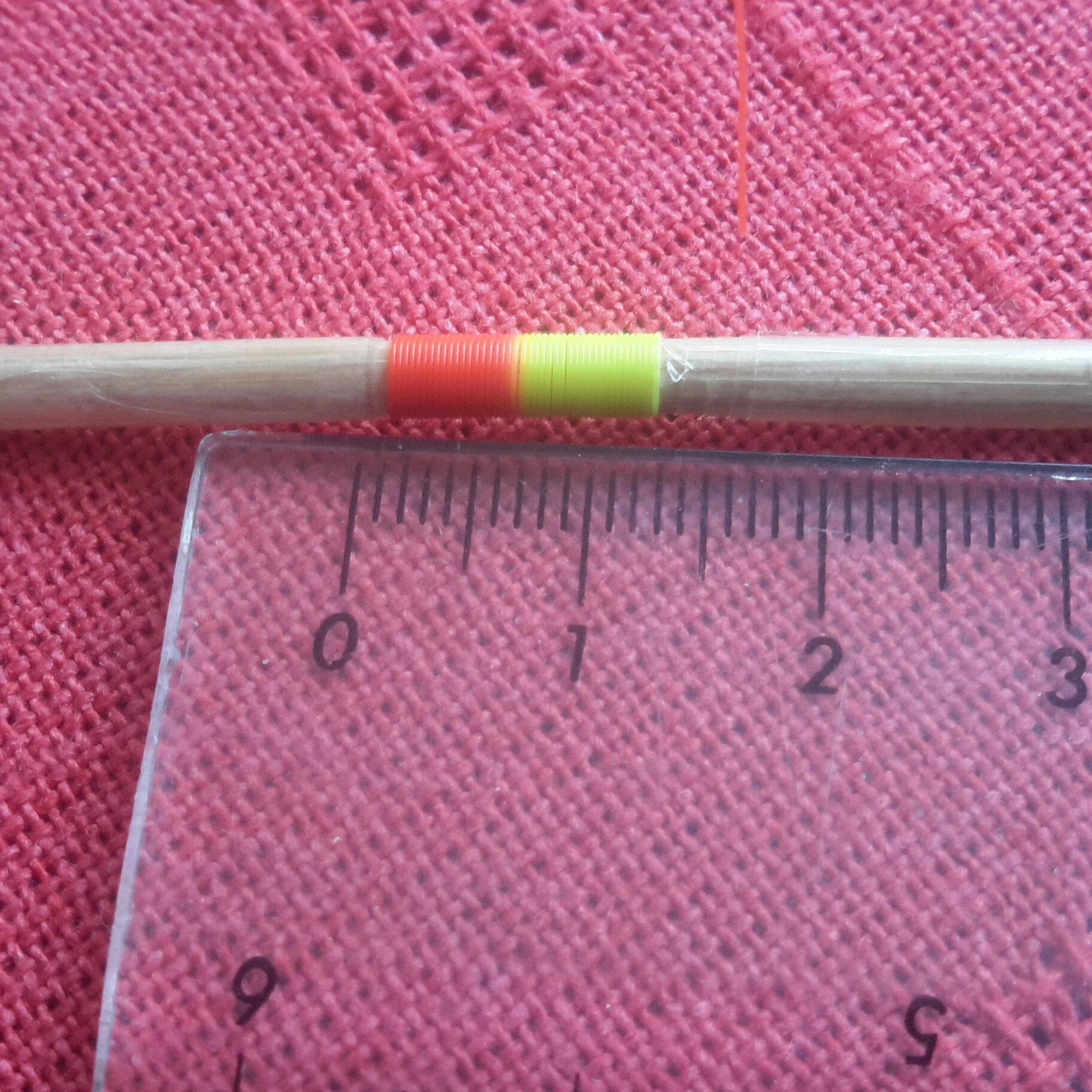 You’ll notice that the Hanak Bi-Colour Indicator line is indeed two colours, maybe even three depending on which you buy. Cut a 50 cm length from the spool trying to ensure that the colour change or changes are in the middle of the length of line you have cut away. The centre of this section will be the centre of the coil of the finished indicator and having two colours gives the angler greater visibility of the indicator on the water.