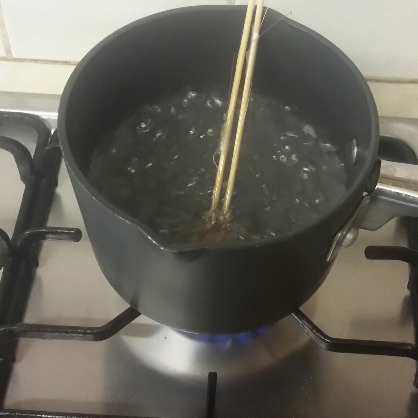 A small pan/kettle of boiling water